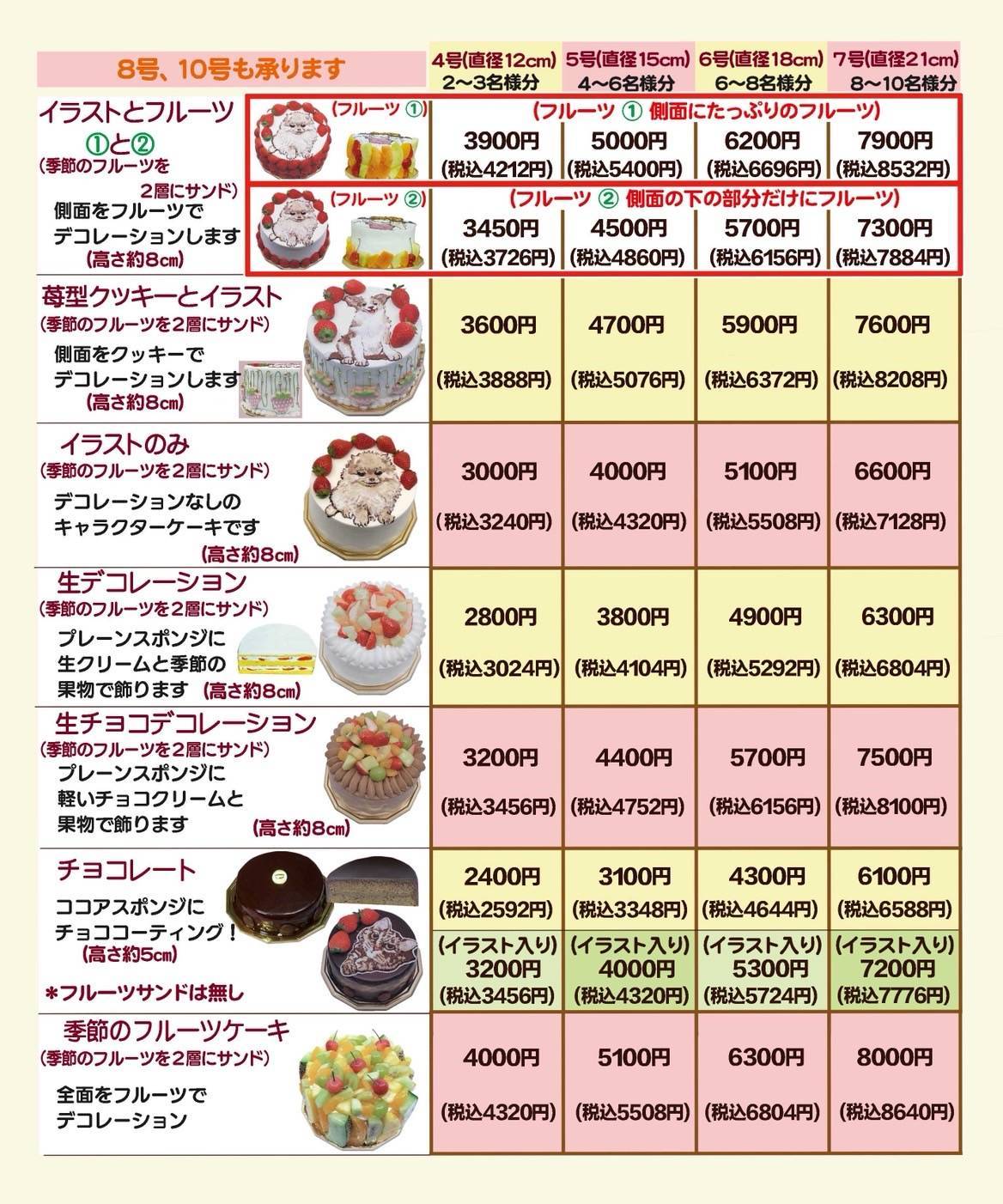 イラストとフルーツのケーキ